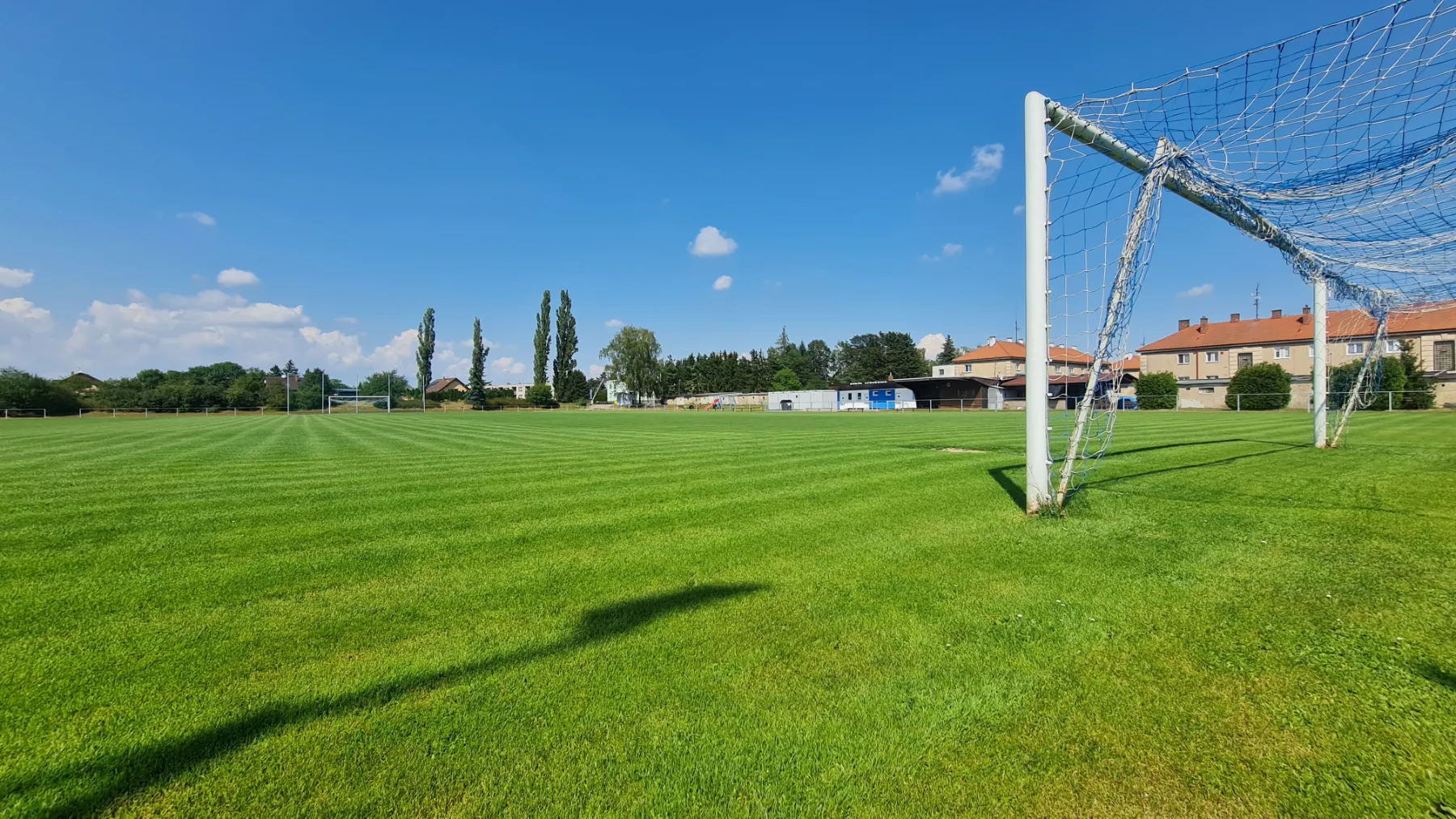 Hospoda na hřišti — pivo, nealko, káva, klobásy, párky. Při zápasech otevřeno 30 min před výkopem.